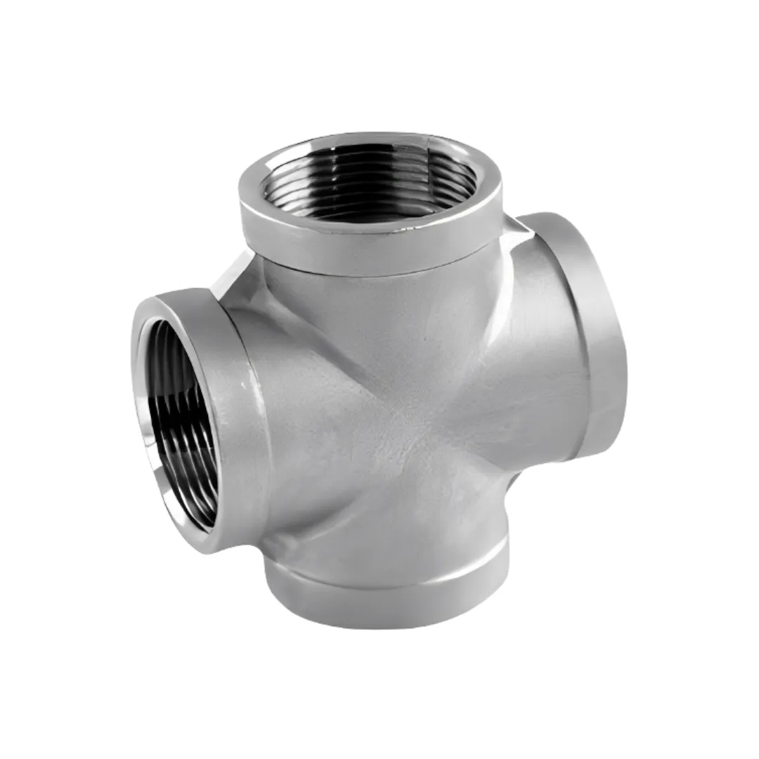 Características Classe 150 lbs em Aço Inox 304 ou 316, com rosca BSP ou NPT. Indicada para derivação em quatro vias em linhas roscadas, garantindo vedação segura e resistência à corrosão em aplicações industriais.