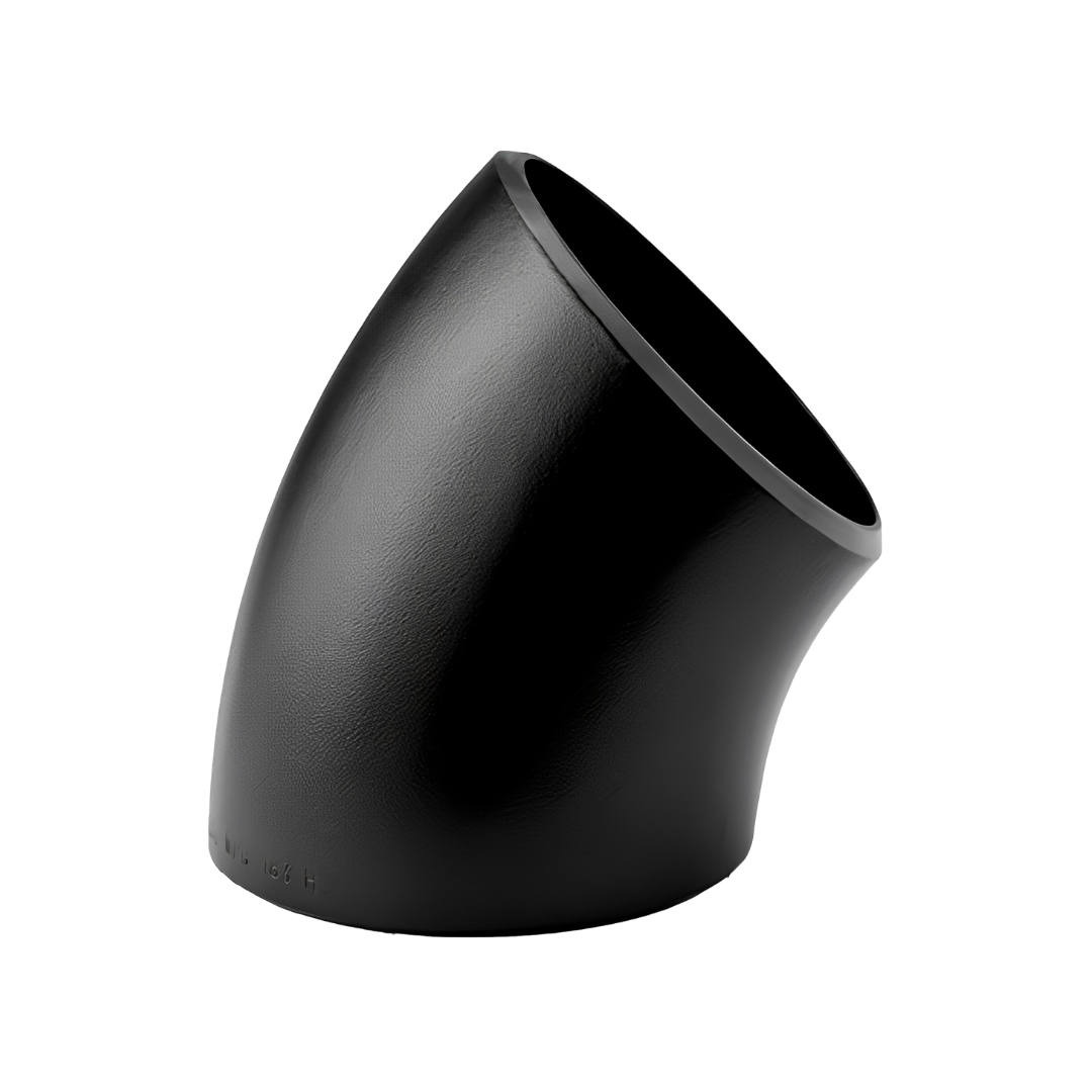 Em aço carbono, recomendado para tubulações SCH80, com extremidades biseladas para solda topo, indicado para alterar a direção em 45° com raio longo, garantindo distribuição segura do fluxo e resistência mecânica.
