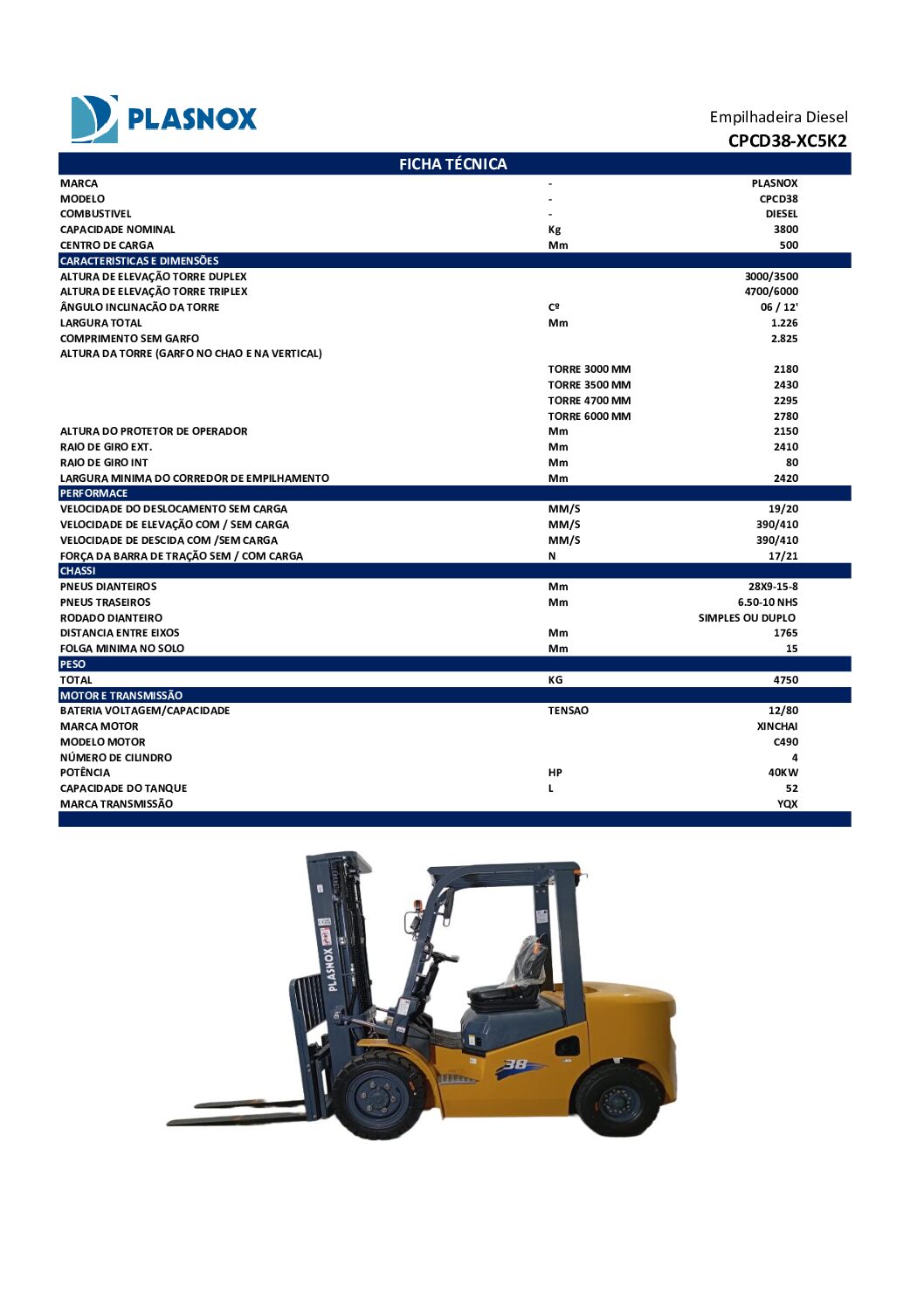 Empilhadeira Diesel 3.8t – CPCD38
