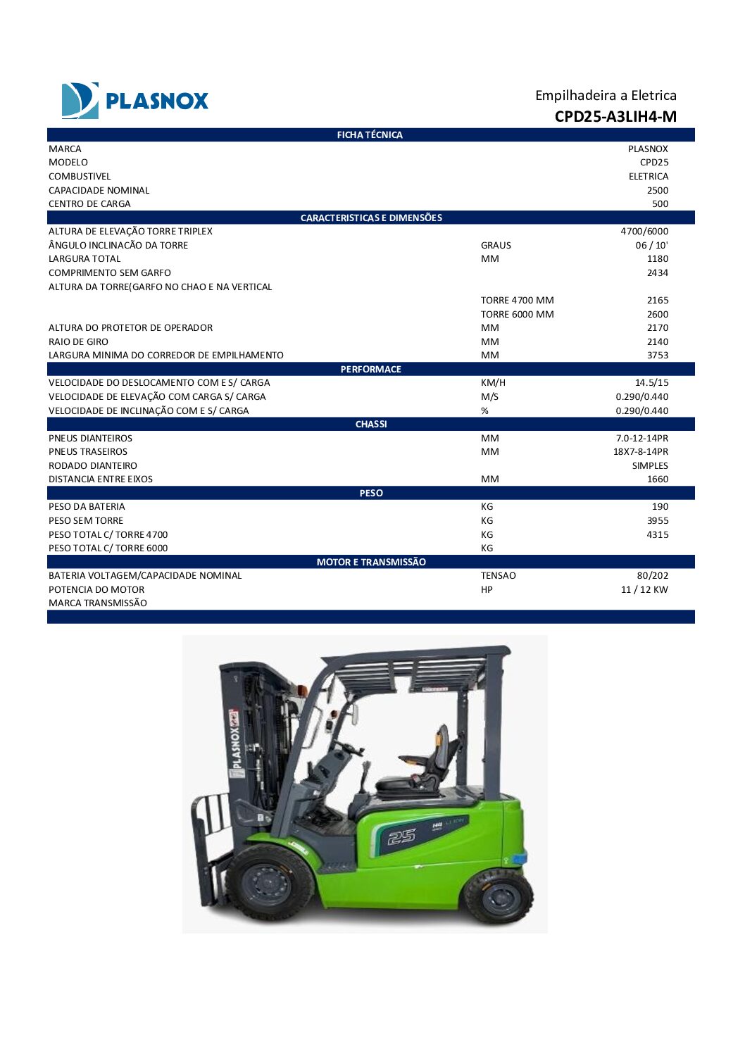 A Empilhadeira Elétrica CPD25 – Plasnox foi desenvolvida para operações logísticas e industriais que exigem eficiência, silêncio operacional e zero emissão de poluentes, sendo ideal para ambientes internos como centros de distribuição, galpões e indústrias.