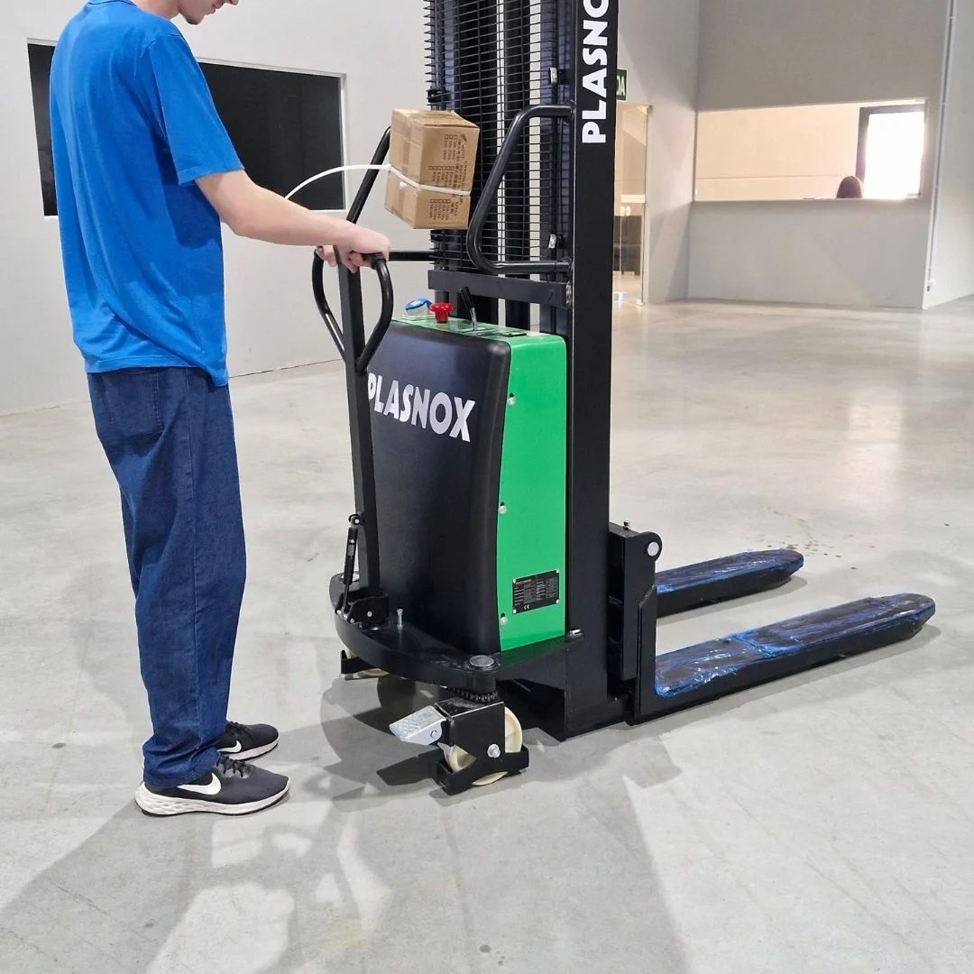 Empilhadeira semi-elétrica versátil e econômica para operações internas, com capacidade de carga de até 1.500 kg. Elevação elétrica e tração manual. Excelente custo-benefício para operações leves