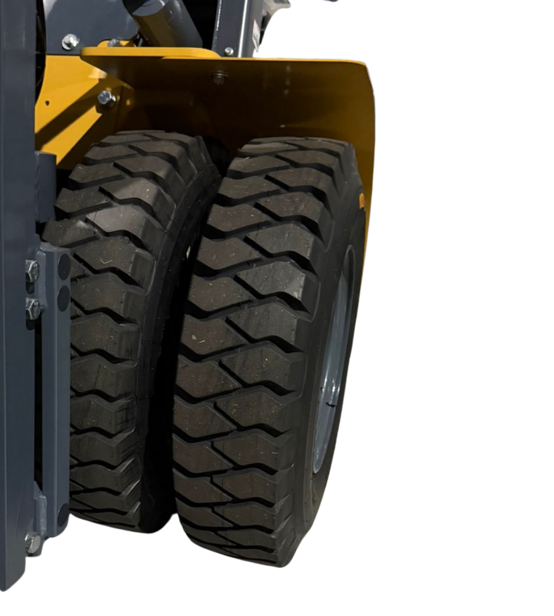 Conjunto para instalação de eixo duplo na empilhadeira. Aumenta significativamente a estabilidade lateral do equipamento, sendo ideal para a elevação de cargas muito pesadas ou com centro de carga estendido.