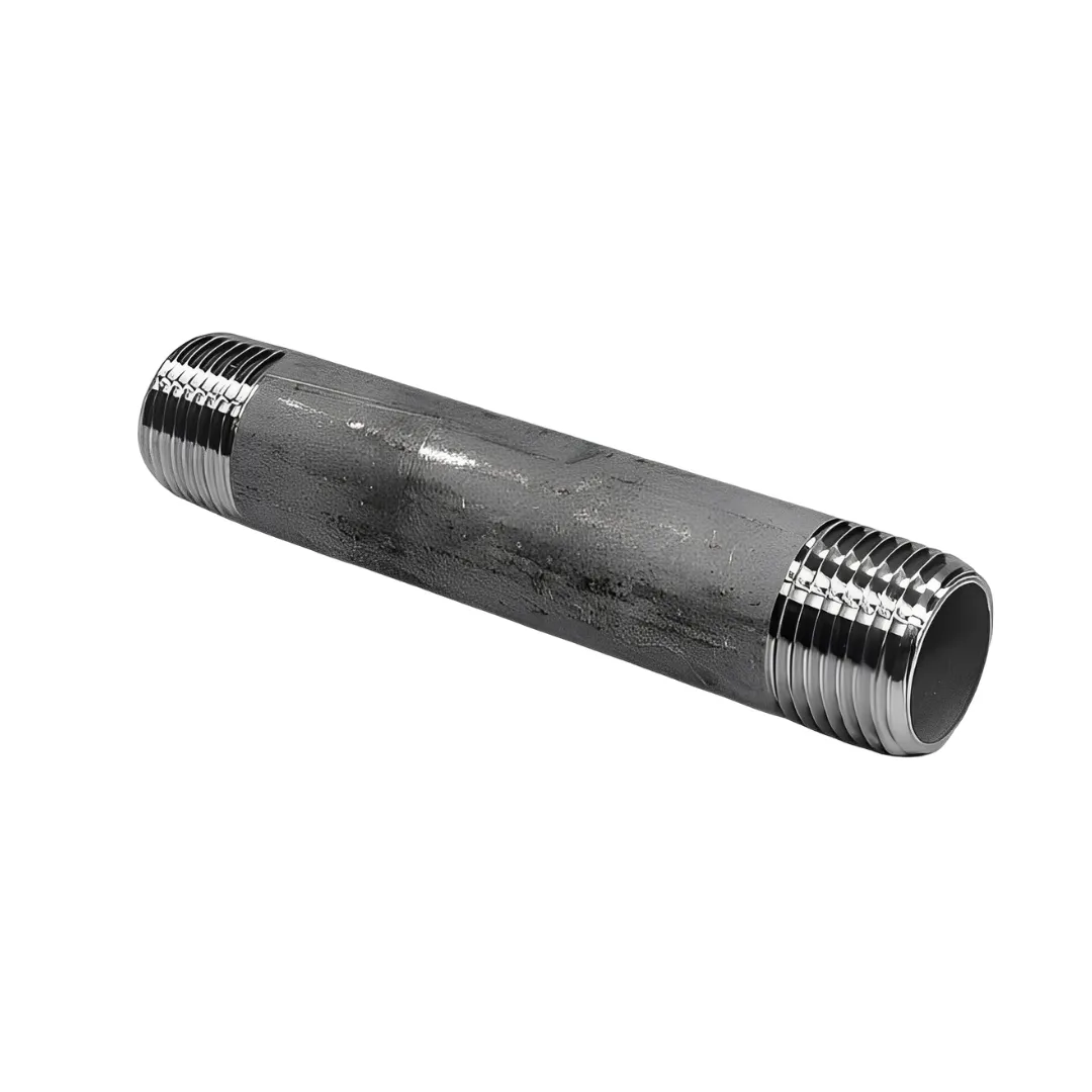Características Classe 150 lbs, comprimento 100 mm, com rosca BSP macho nas duas extremidades e corpo liso. Utilizado para prolongamento e interligação de conexões roscadas, garantindo vedação segura e resistência à corrosão.