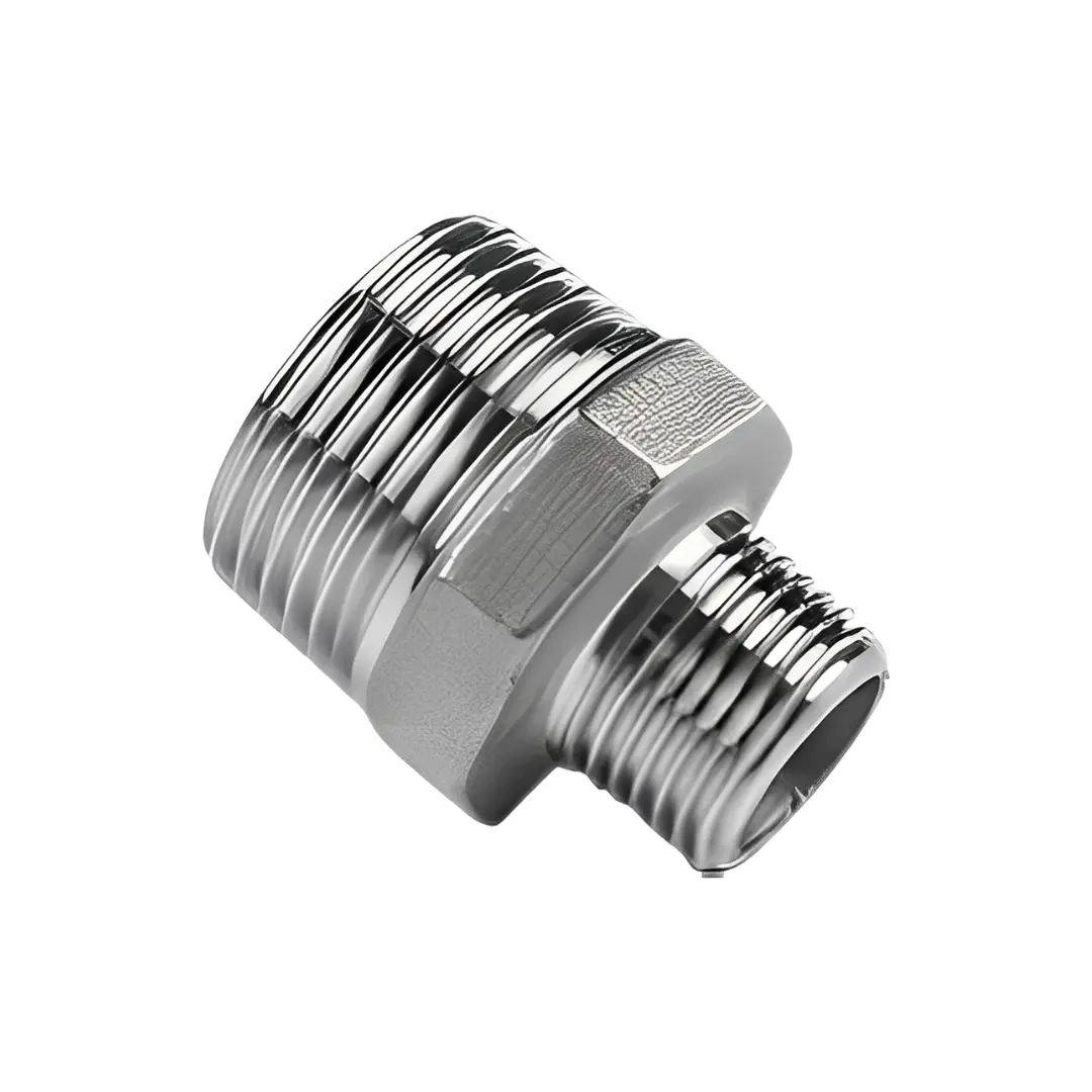 Características Classe 150 lbs em Aço Inox 304 ou 316, com rosca BSP ou NPT e corpo sextavado para aperto. Indicado para interligação de conexões fêmea em linhas roscadas, garantindo vedação segura e resistência à corrosão.