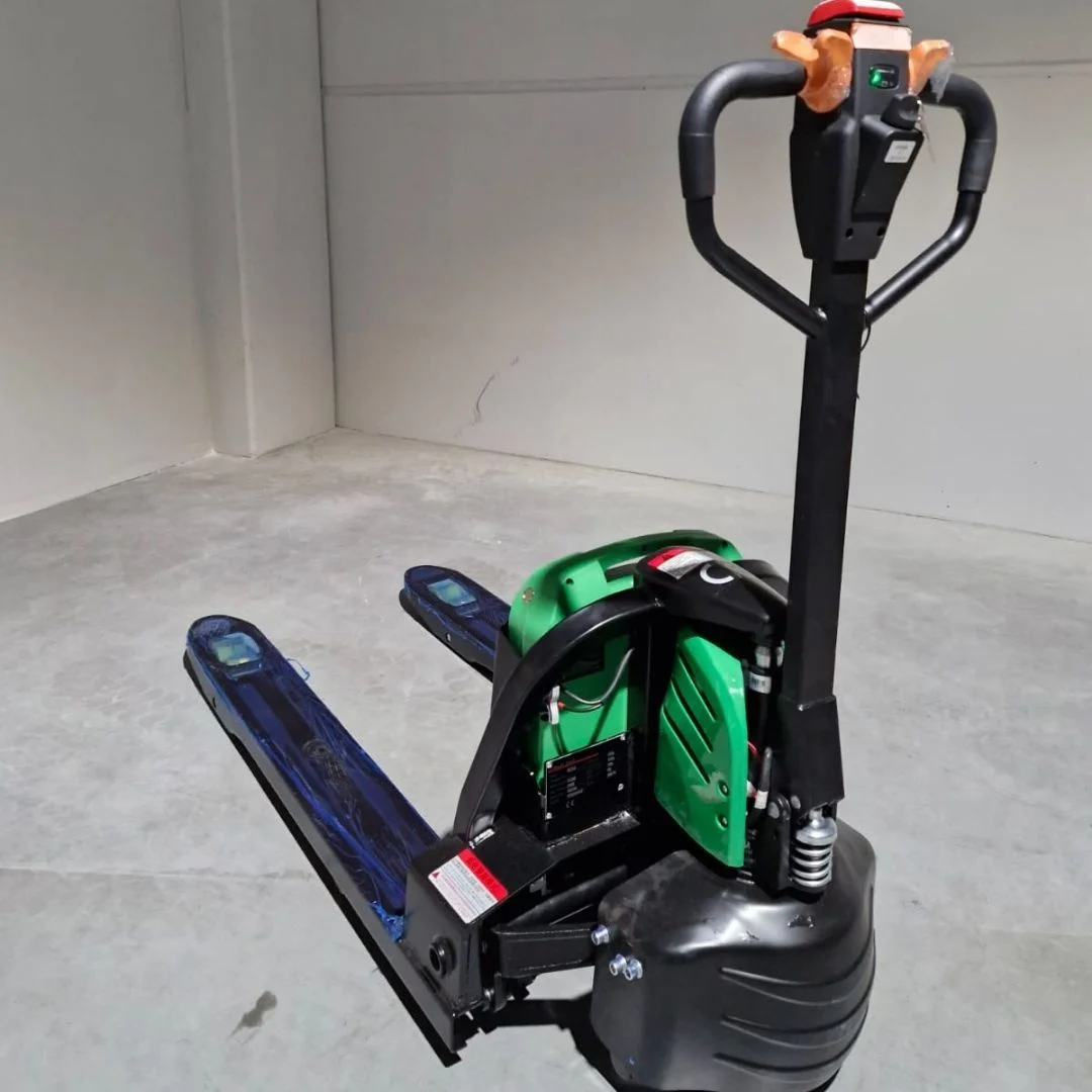 Paleteira elétrica compacta e eficiente para movimentação de cargas leves e médias, com capacidade de até 1.500 kg. Bateria de lítio com carregamento prático. Ideal para operações internas e curtas distâncias.