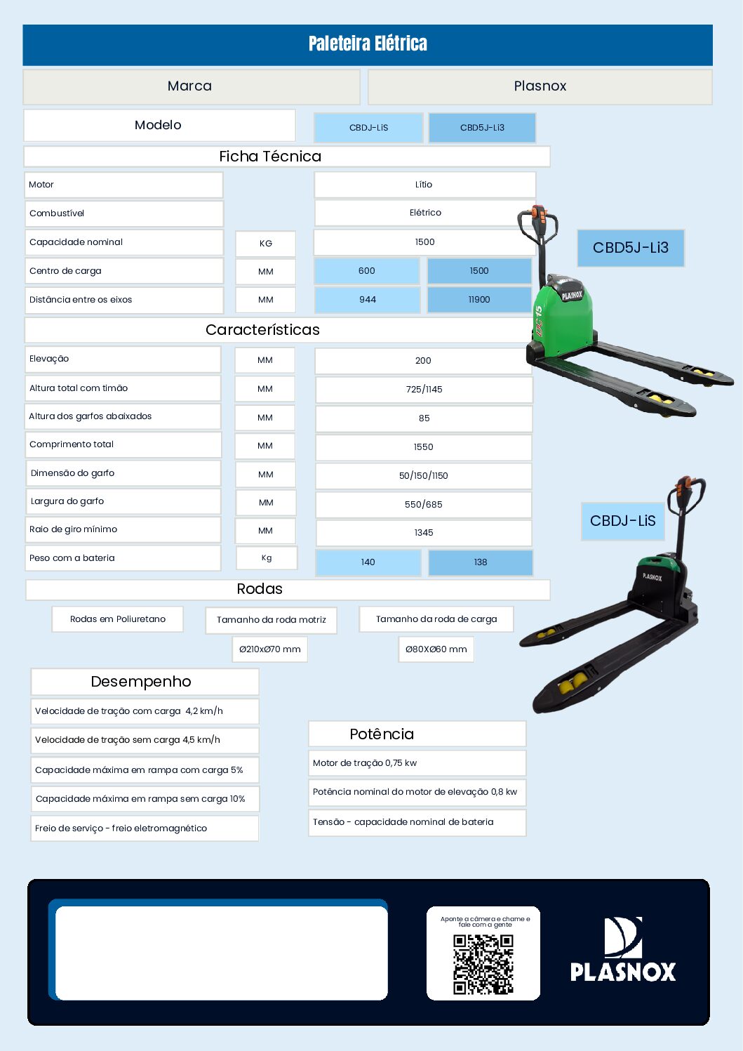 A Paleteira Elétrica CBD20J-LiS – Plasnox é indicada para operações que exigem maior capacidade de carga, eficiência e confiabilidade na movimentação horizontal de materiais.