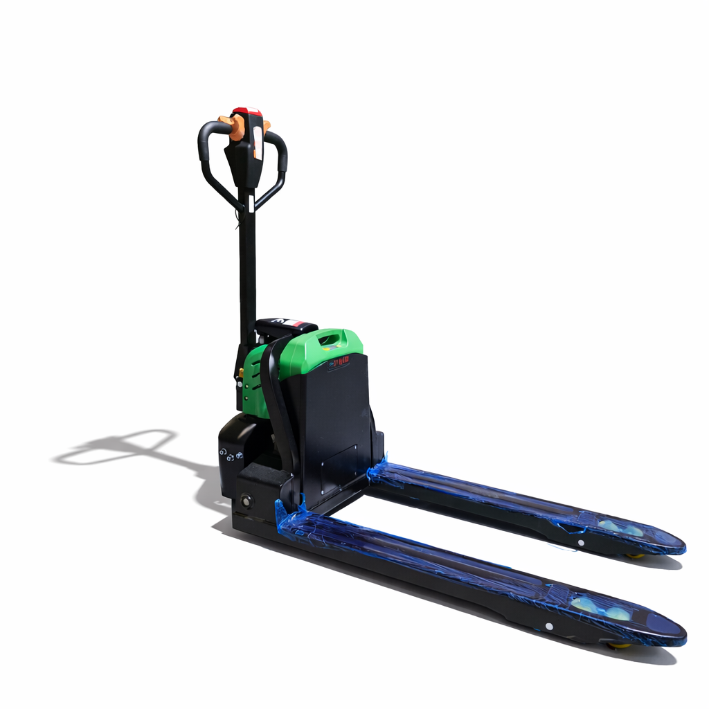 Com capacidade nominal de 2.000 kg, centro de carga de 600 mm e estrutura reforçada, o modelo oferece elevação elétrica de até 200 mm, garantindo praticidade no manuseio de pallets em ambientes internos.