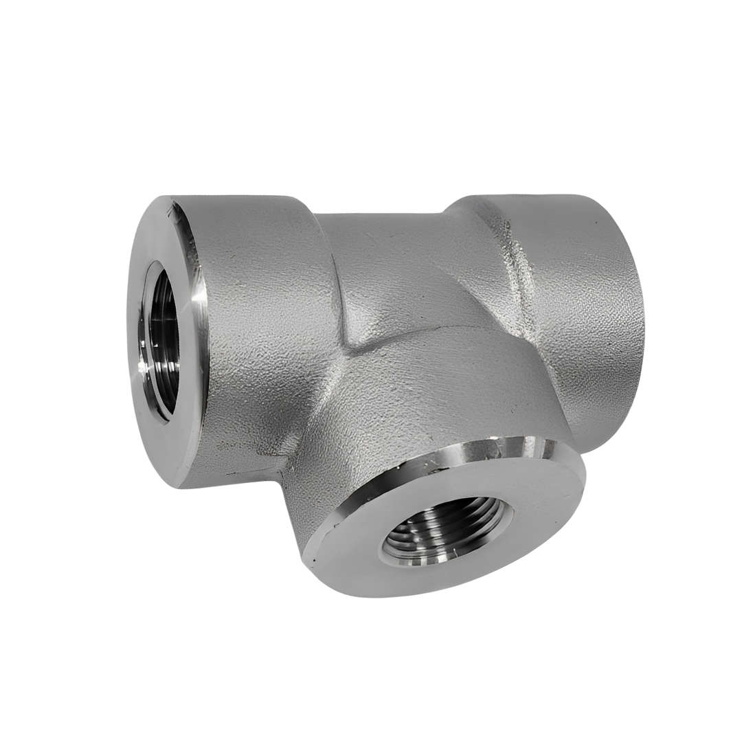 Classe 3000 lbs em Aço Inox 304, com rosca BSP ou conexão SW. Indicada para derivação em 90° com redução de diâmetro em linhas de alta pressão, garantindo vedação segura e elevada resistência mecânica e à corrosão.